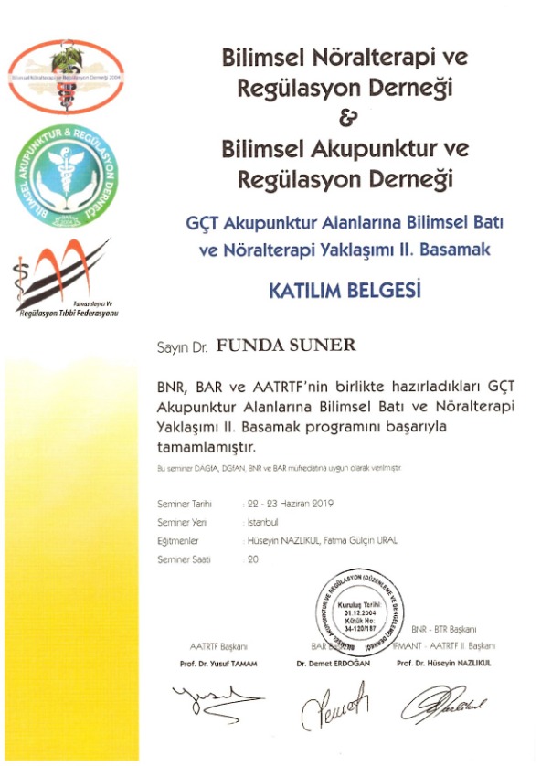 - Bilimsel Akupunktur ve Regülasyon Derneği 2. Basamak GÇT Akupunktur ve Nöralterapi Yaklaşımı (22-23 Haziran 2019)